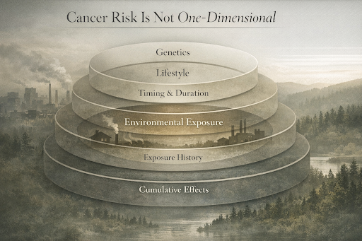 Cancer risk is shaped by multiple influences over time — with environmental exposure representing one often-overlooked part of the bigger picture.
